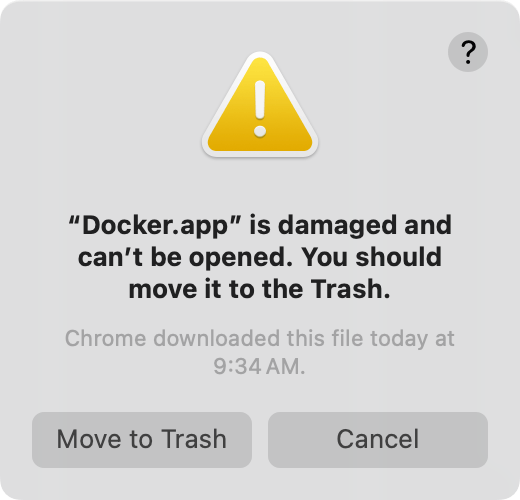 "Docker.app" is damaged and can't be opened. You should move it to the Trash.