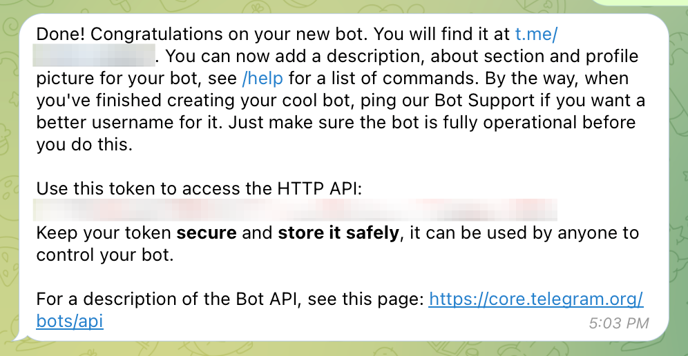 telegram chatId는 공개되도 되는지 아닌지 몰라서 일단 넣었다