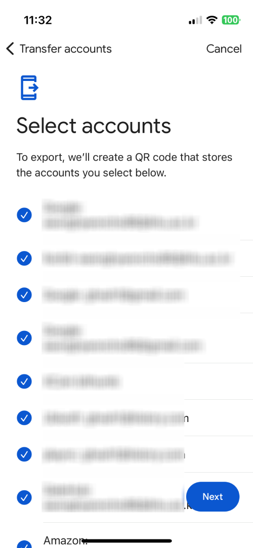 내보낼 계정들을 선택하면 QR코드가 나온다.