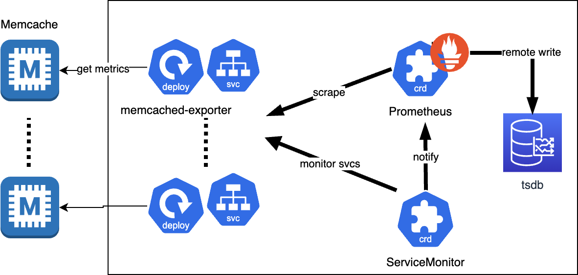 memcached 서버가 여러대 있고, prometheus를 띄울 수 있는 k8s 클러스터가 있다고 가정해보겠다.