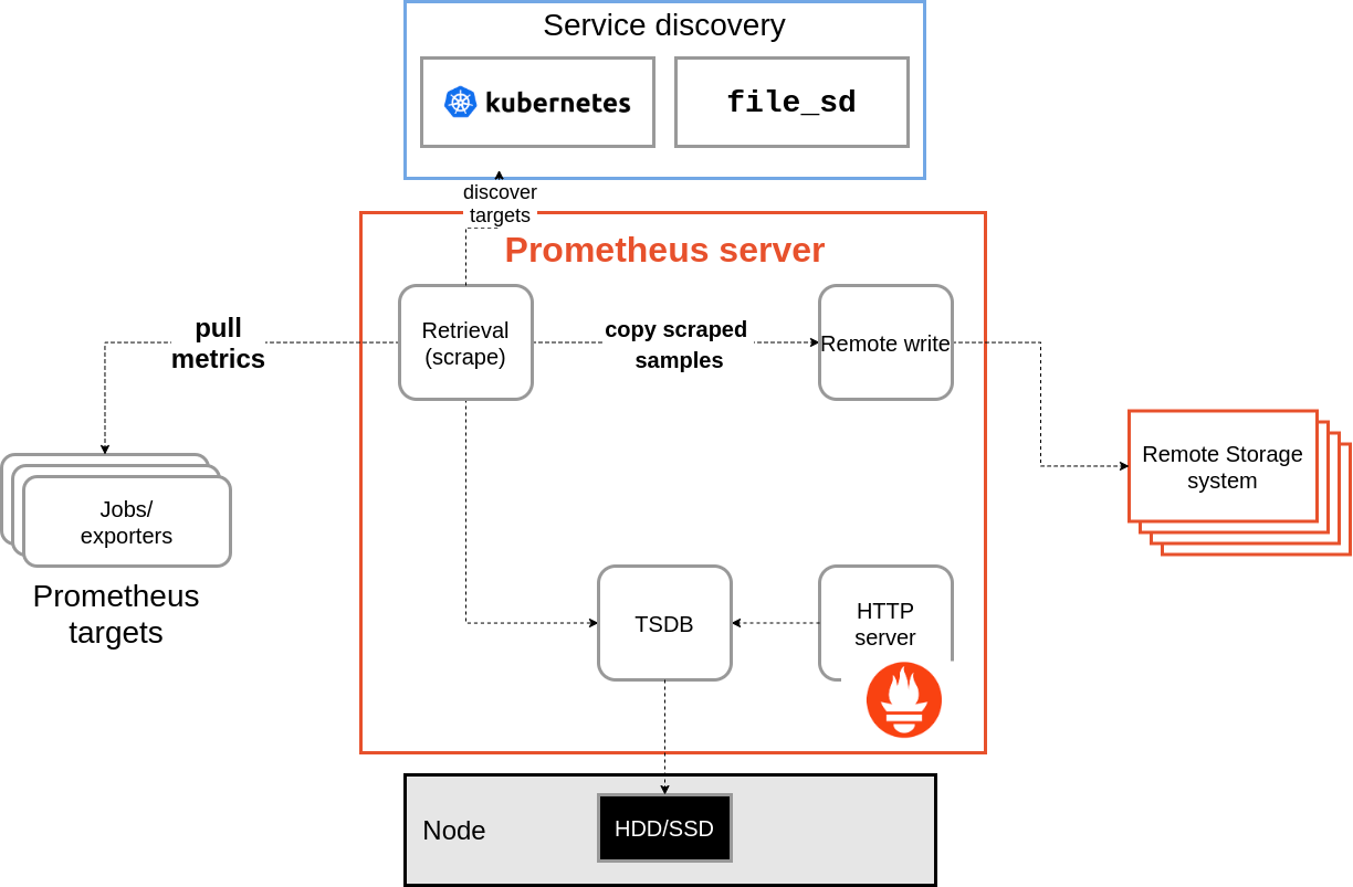 기본 구성은 이렇게 생겼고, 기본적으로는 메트릭을 긁어가는(scraping) 방식으로 동작한다.