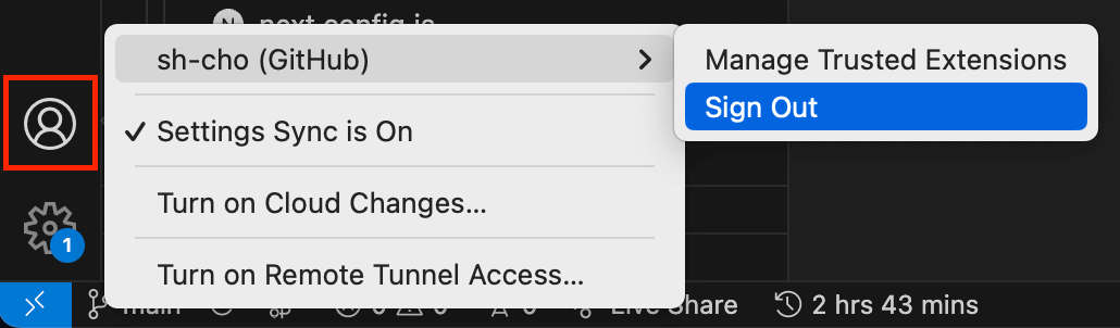 [VSCode] Copilot GitHub 계정 로그아웃 방법