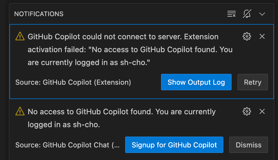 최근 회사계정으로 코파일럿 구독이 되어 개인 계정 구독을 끊었는데, 계정을 변경하려고 extension 설정을 찾아봤는데 없었다